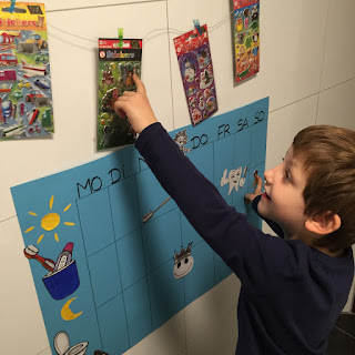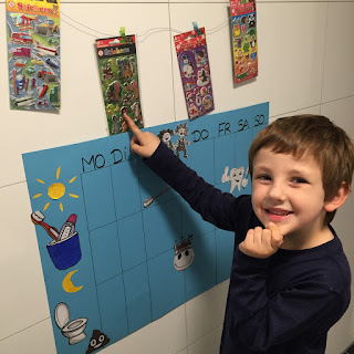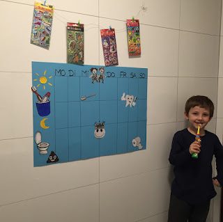 Heute haben wir gleich mal 3 Sticker aufgeklebt, da Gabriel tatsächlich 2 mal auf der Toilette war und sich abends sofort die Zähne geputzt hat.