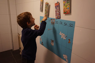 Ich hab mir also überlegt wie ich es am besten mache. Eine Magnettafel, die man immer wieder verwenden kann? Im Grunde genommen eine gute Sache, aber ich wollte einen begrenzten Zeitraum dafür auswählen, es soll ja schließlich danach auch ohne Belohnungstabelle funktionieren. Hab mir also gedacht, bis Neujahr ist ne‘ gute Sache.
