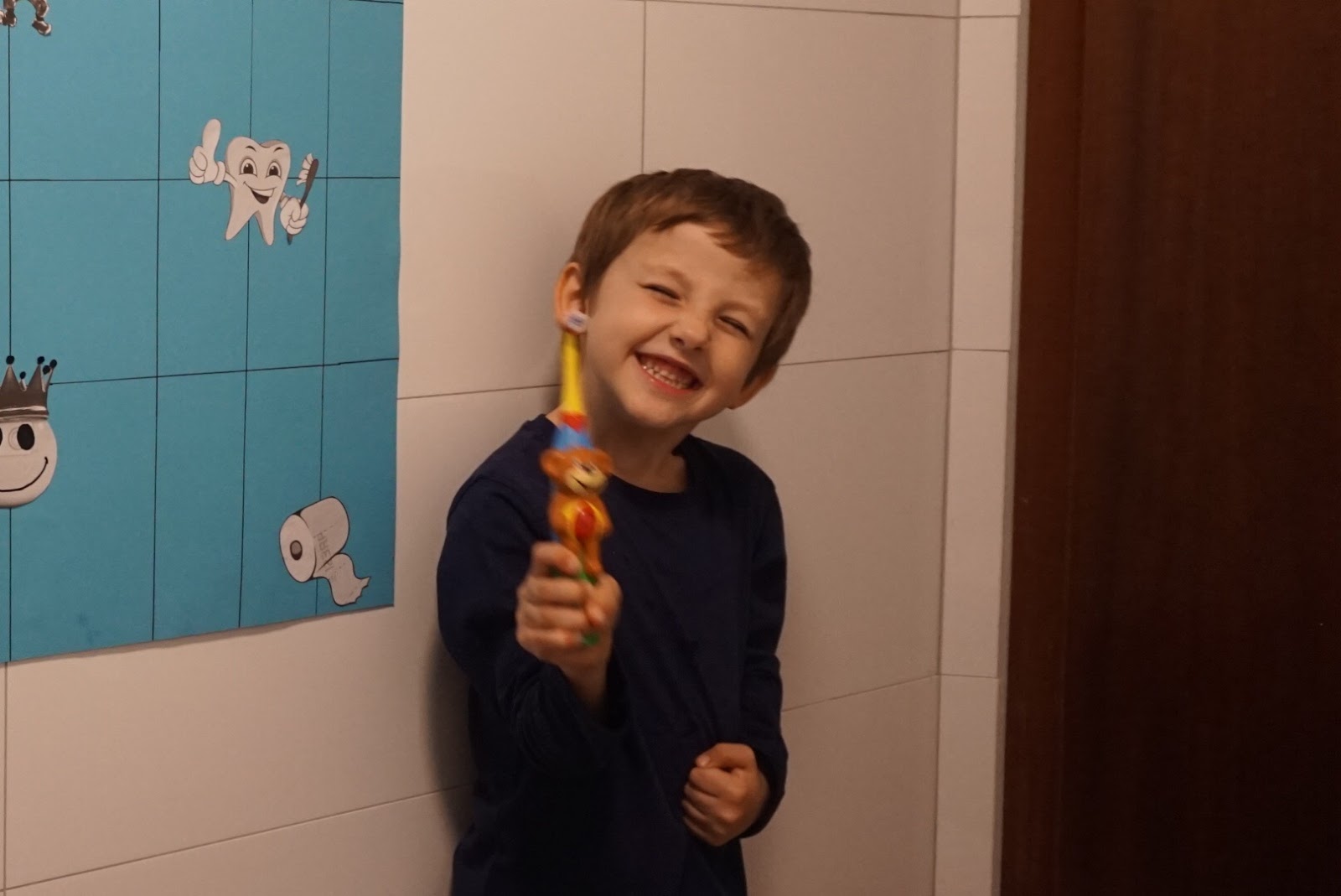 Fürs erste ist die Belohnungstafel ziemlich gut angekommen. Als wir heute für ein paar Stunden draußen waren und im Anschluss wieder zuhause reingekommen sind, wollte Gabriel sich als erstes die Zähne putzen. Ok das ist vielleicht nur die anfängliche Euphorie, aber die elektrische Zahnbürste ist der Knaller. Gabriel lässt sich sogar problemlos nochmal die Zähne von mir nach putzen, wenn er fertig ist.